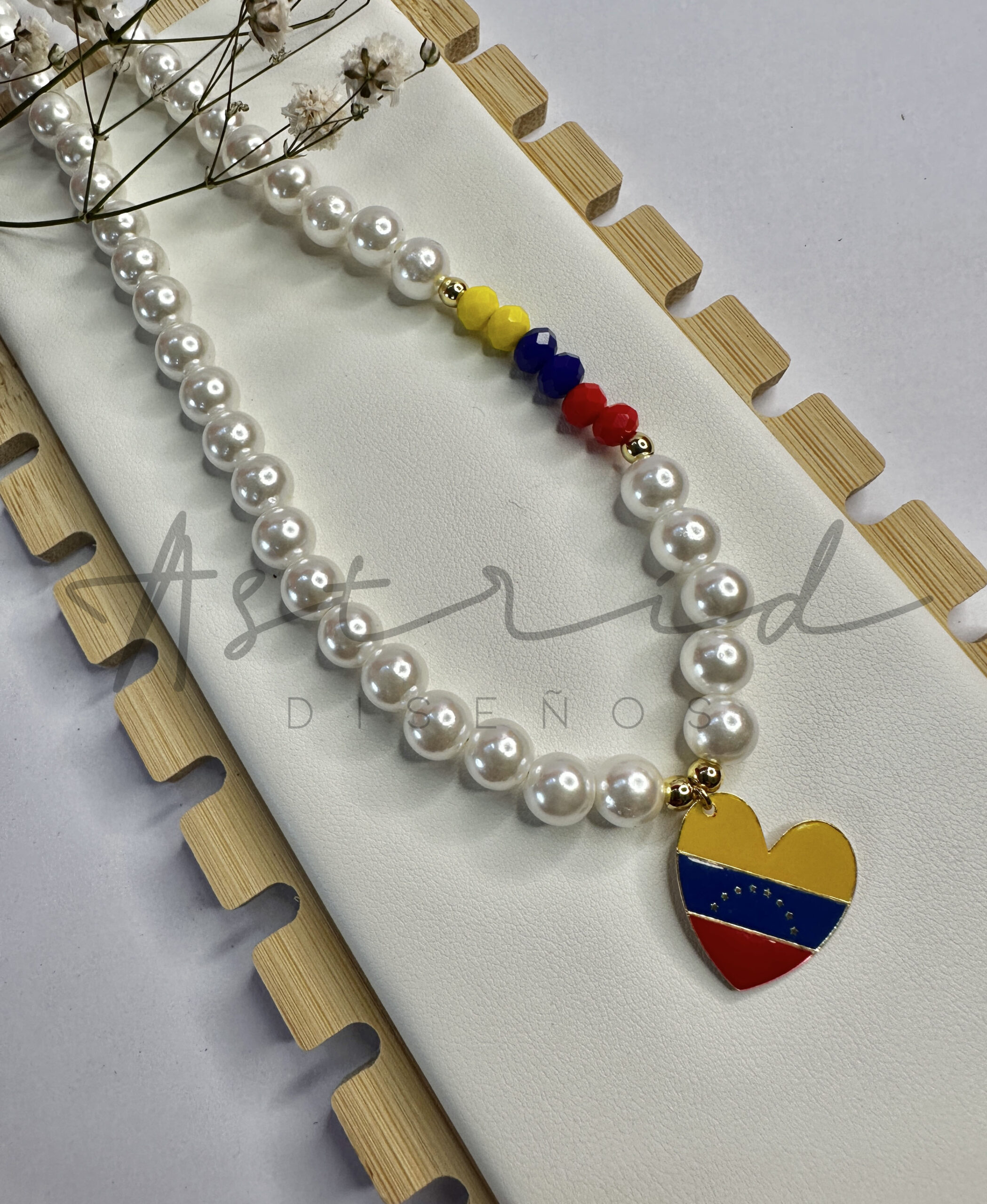 • Material: Perlas, Balines, Cristales y Dije esmaltado.